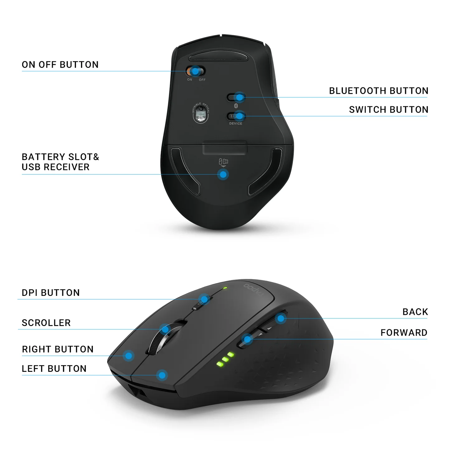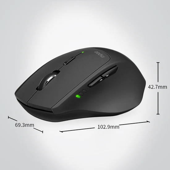 ماوس بیسیم رپو MT550 با حسگر نوری 2000 DPI، اتصال دوحالته، و طراحی ارگونومیک، دقت و راحتی برای کار و گیمینگ سبک ارائه می‌دهد.