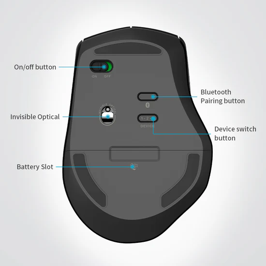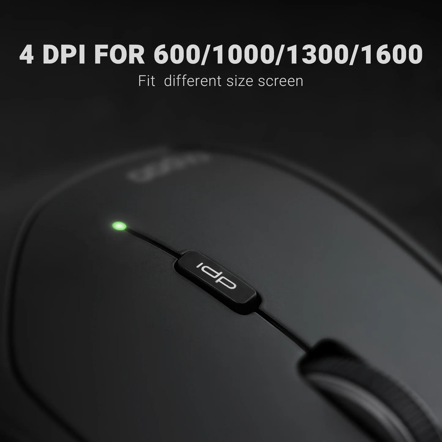 • 6 دکمه قابل برنامه‌ریزی (چپ، راست، چرخ اسکرول، DPI، سوییچ دستگاه، روشن/خاموش).