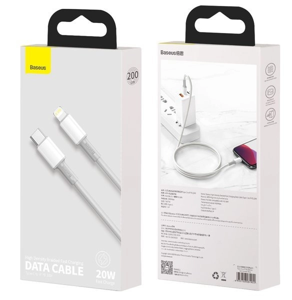 کابل شارژ باسئوس (بیسوس) مدل High Density 20W 2m یک کابل Type-C به Lightning بافته‌شده و مقاوم است که برای شارژ سریع iPhone و انتقال داده طراحی شده است.