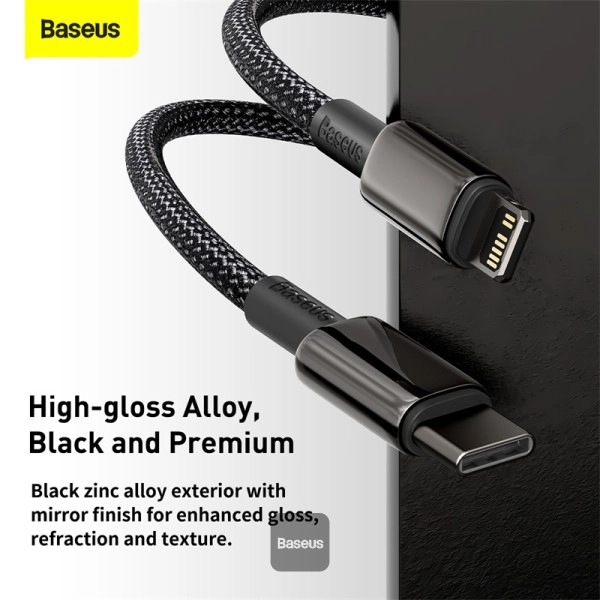 کابل شارژ باسئوس (بیسوس) مدل Tungsten Gold 20W 2m یک کابل Type-C به Lightning بافته‌شده و مقاوم است که برای شارژ سریع iPhone و انتقال داده طراحی شده است.