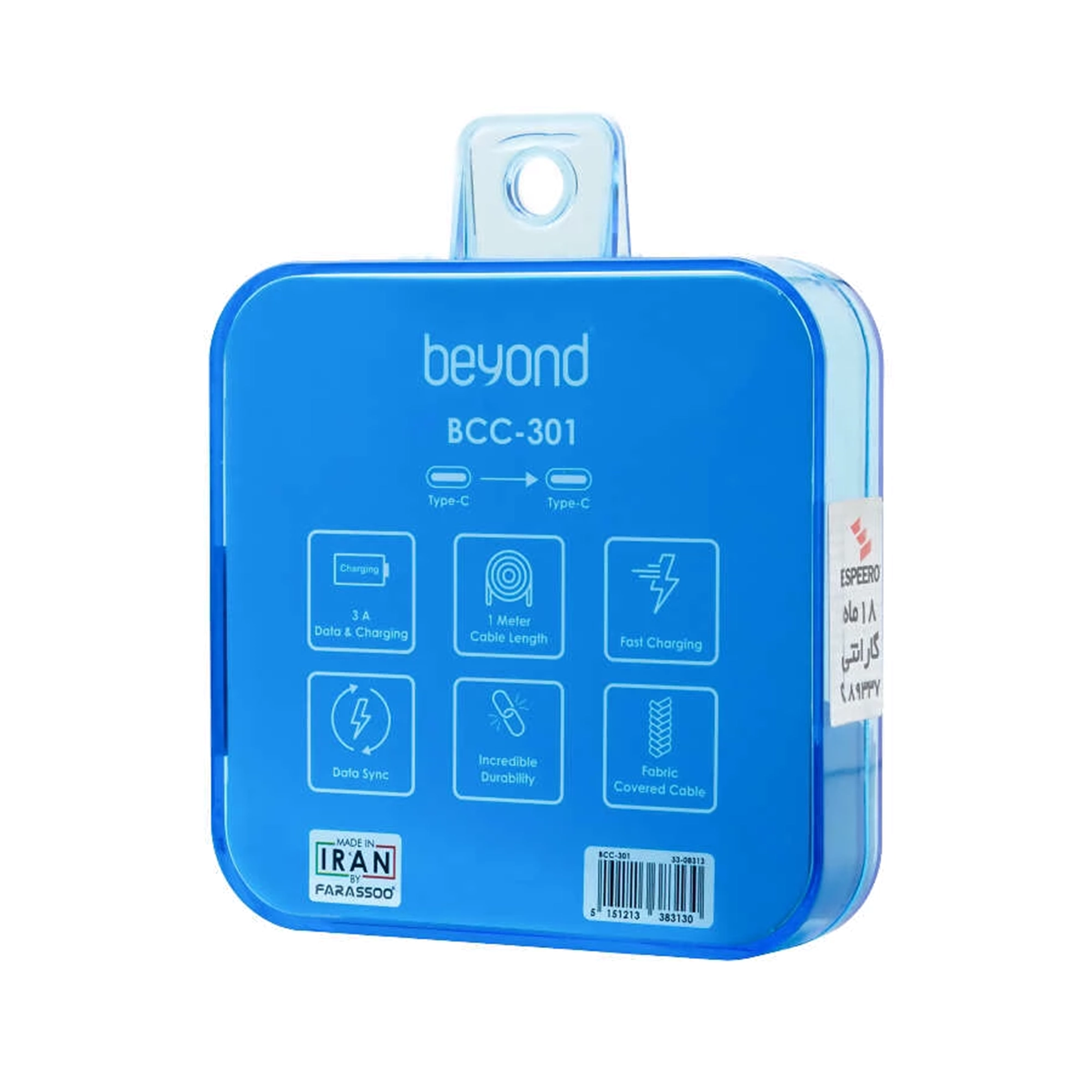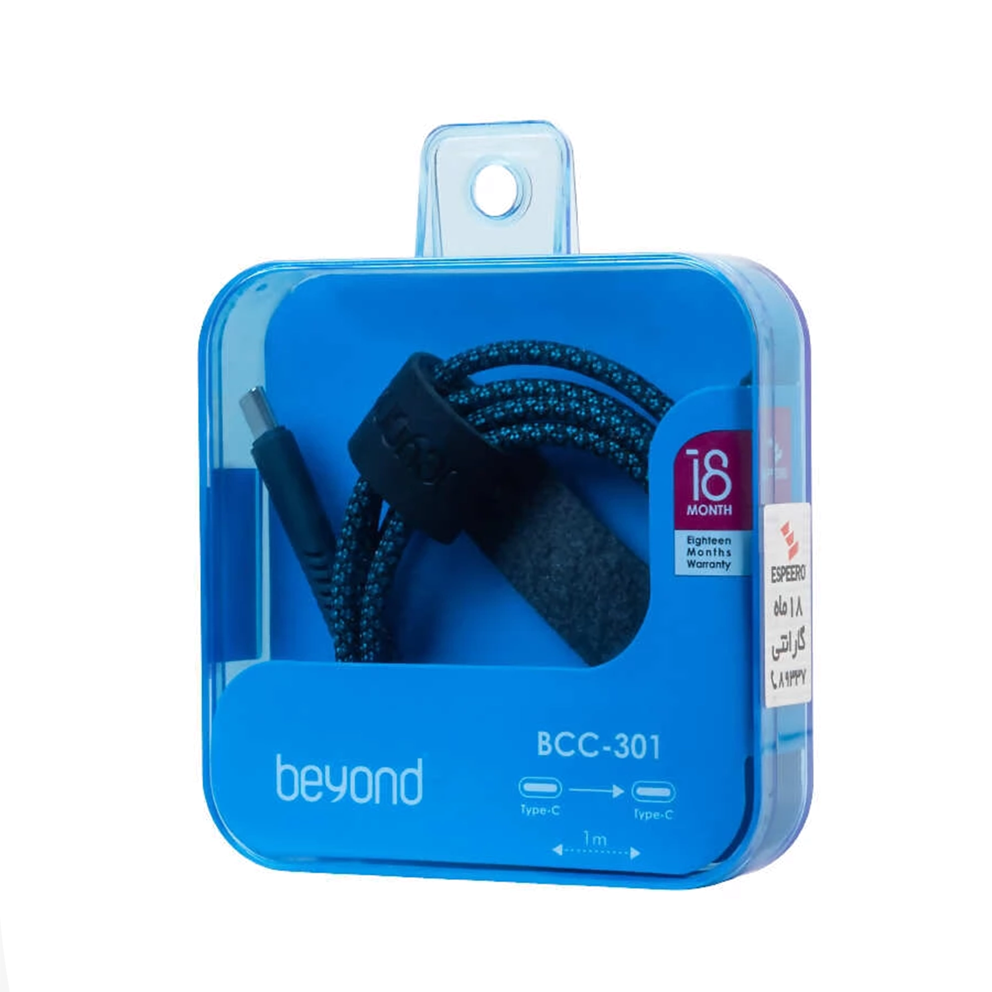 کابل شارژ بیاند مدل BCC-301 PD Type-C با روکش پارچه‌ای نایلونی، قابلیت فست شارژ 60 وات و انتقال داده 480 مگابیت بر ثانیه، انتخابی ایده‌آل برای دستگاه‌های USB-C است. طول یک متری و طراحی با دوام، راحتی و عمر طولانی را تضمین می‌کند.