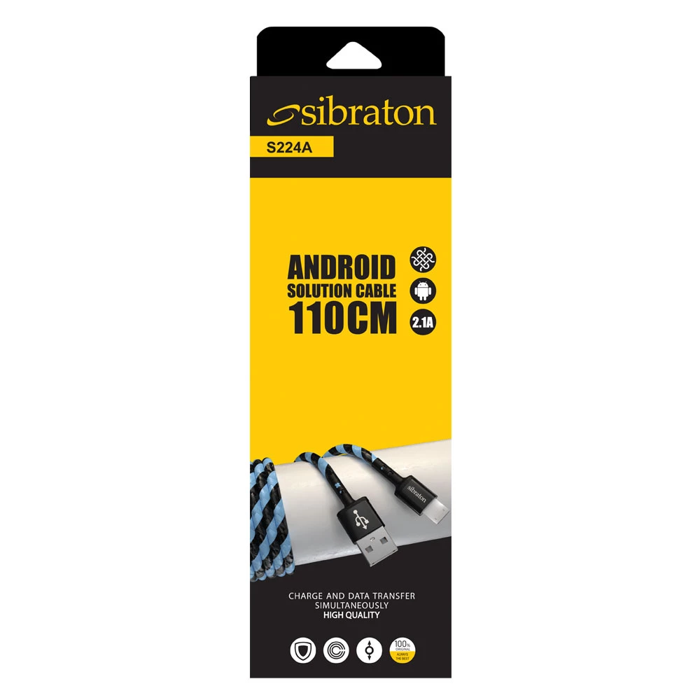 کابل میکرو USB سیبراتون S224A با شدت جریان 2.1 آمپر، گوشی‌های اندروید شما را با سرعت مناسب شارژ می‌کند.