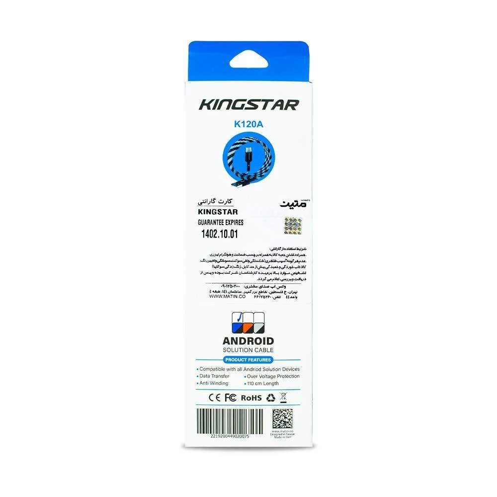 برند معتبر کینگ استار این کابل اندروید را با استانداردهای CE، FCC و RoHS تولید کرده است. بنابراین، کابل K120A کیفیت و ایمنی را تضمین میکند.