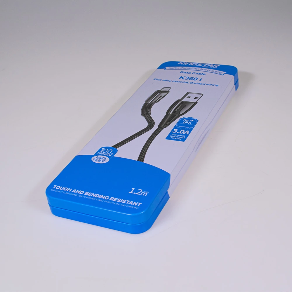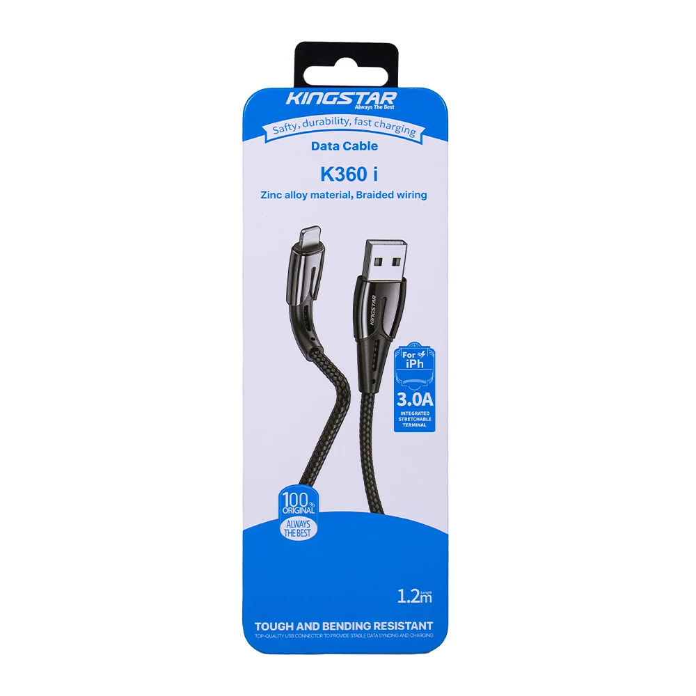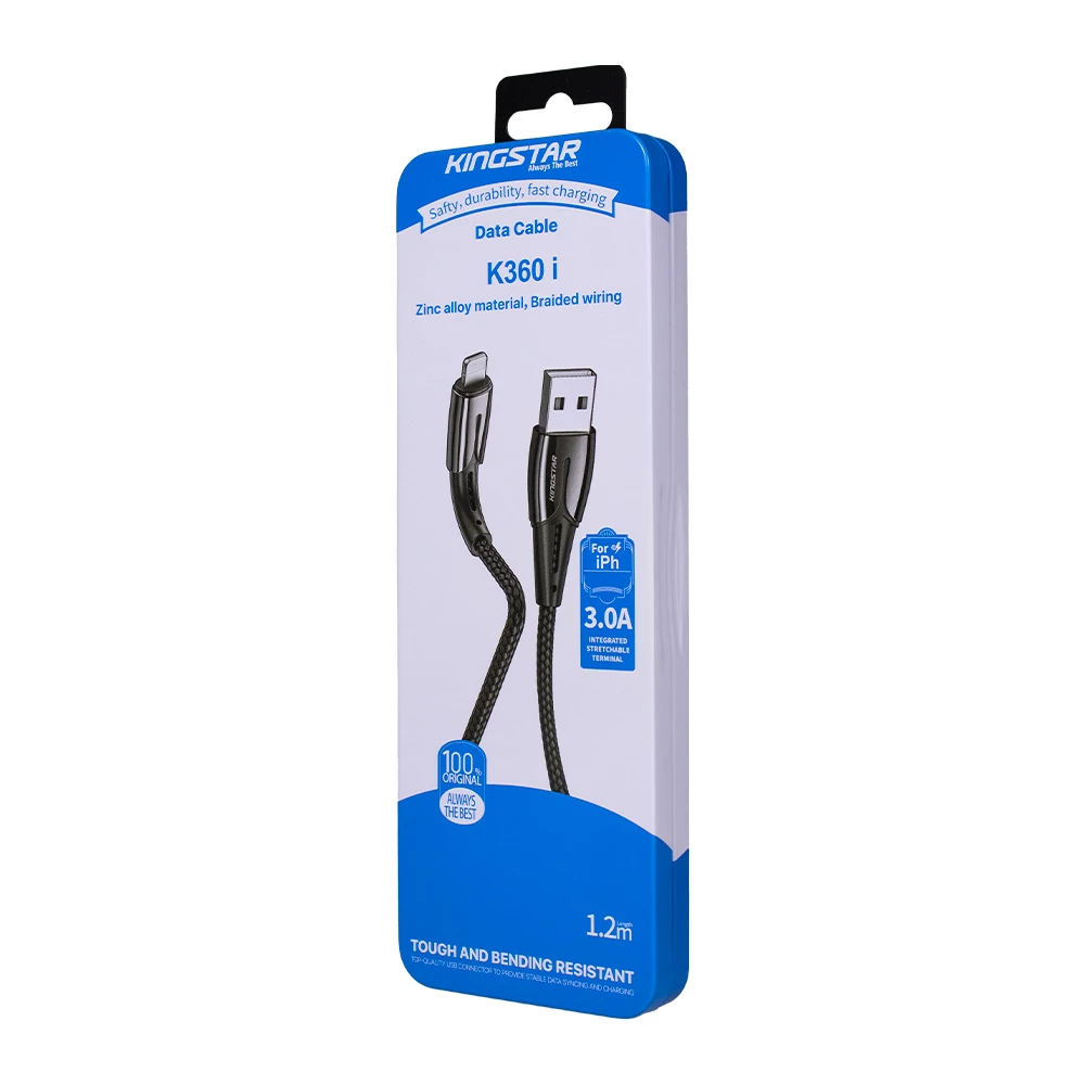 کابل لایتنینگ کینگ استار K360i – فست شارژ 3 آمپر با جعبه فلزی