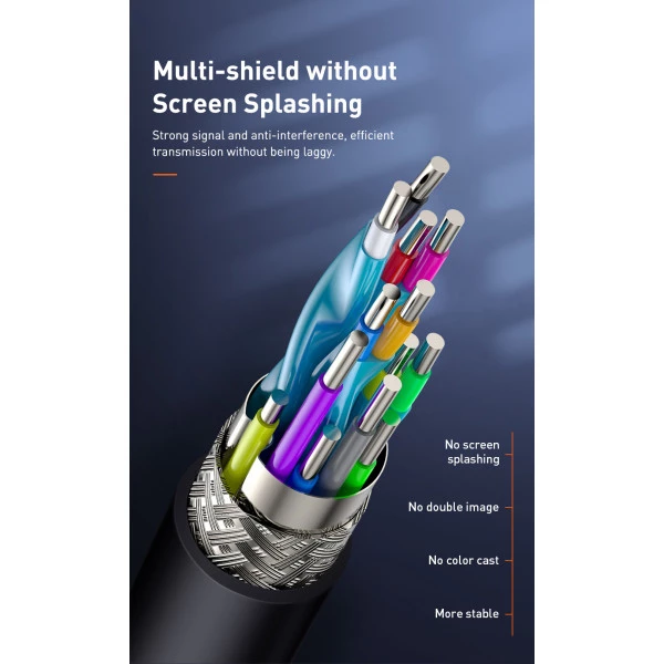 کابل HDMI باسئوس از استاندارد HDMI 2.0 پیروی می‌کند. پهنای باند 18 گیگابیت بر ثانیه انتقال داده سریع را تضمین می‌کند. این سرعت برای محتوای 4K ضروری است. تاخیر در تصویر و صدا وجود ندارد.