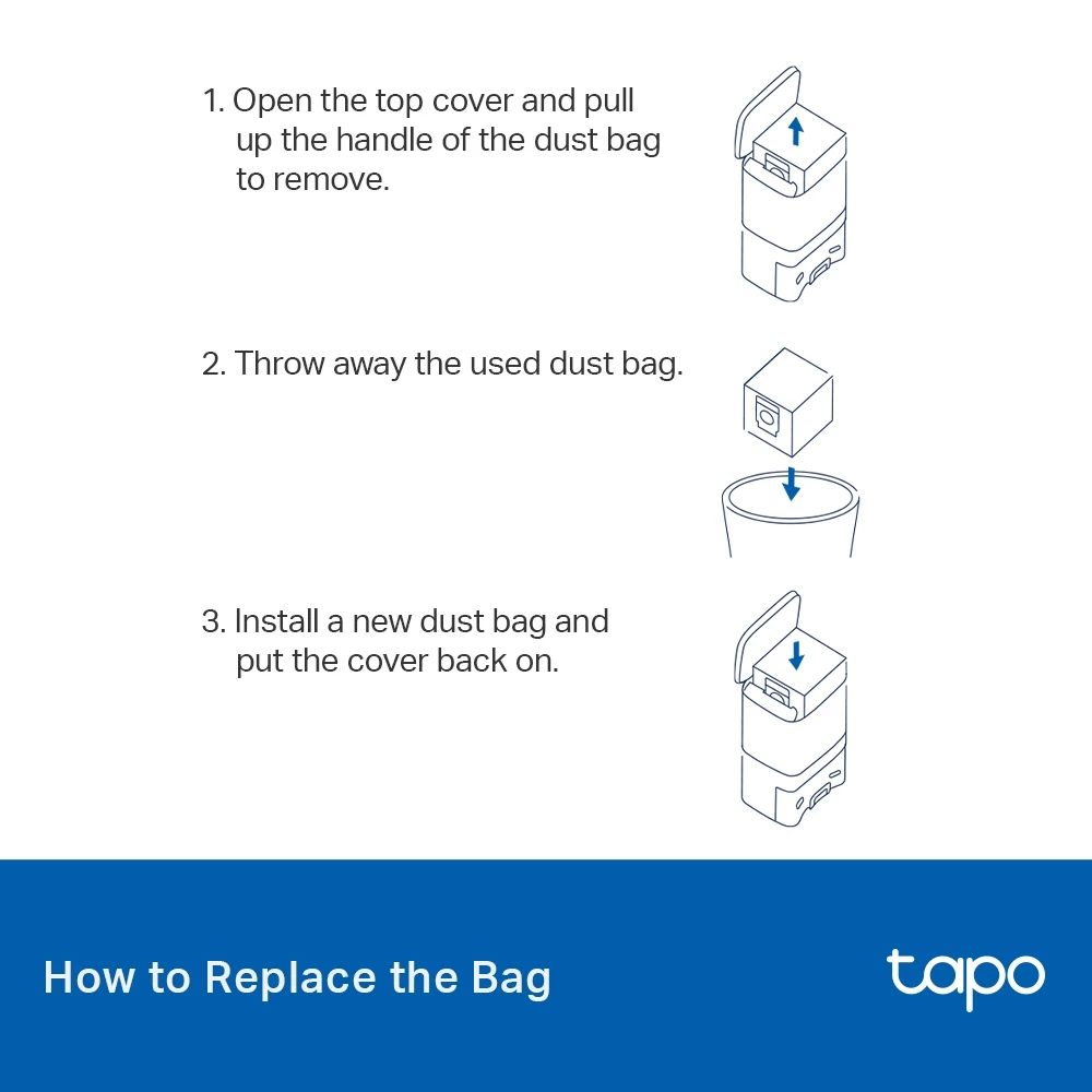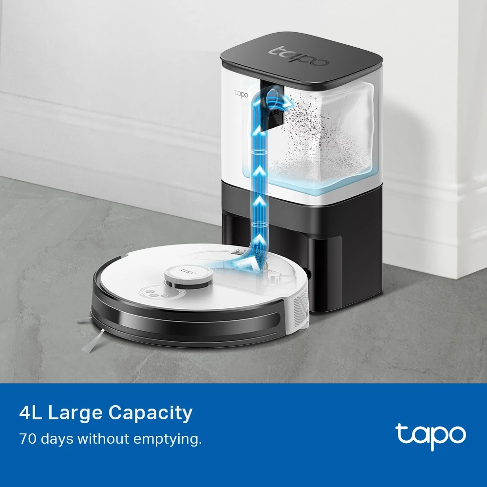 هر کیسه Tapo RVA200 ظرفیت ۴ لیتر دارد. گرد و غبار یک خانه بزرگ را برای مدت طولانی ذخیره می‌کند. شما تا ۷۰ روز نیازی به تعویض کیسه ندارید. این ویژگی زمان زیادی از شما صرفه‌جویی می‌کند. تخلیه مکرر مخزن دیگر لازم نیست.